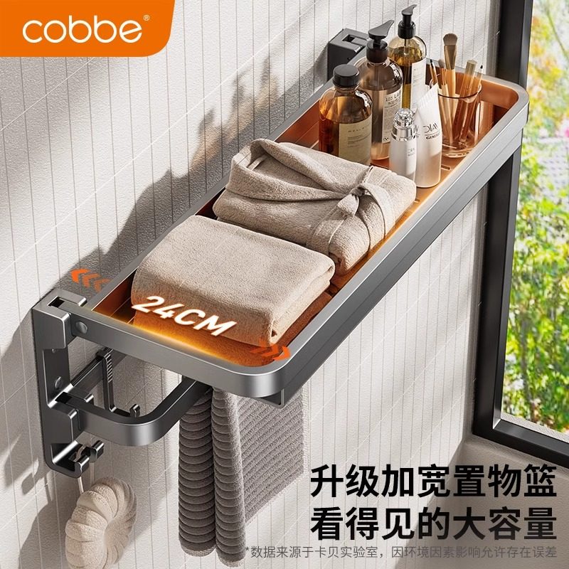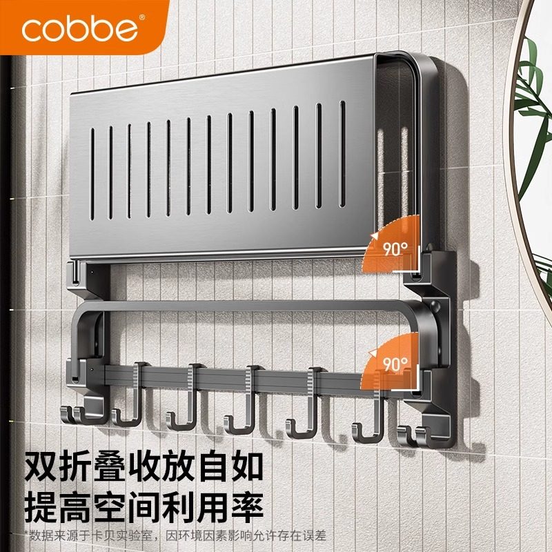 淘宝卡贝卫生间浴巾架免打孔浴室毛巾架置物架一体厕所可折叠挂件挂架