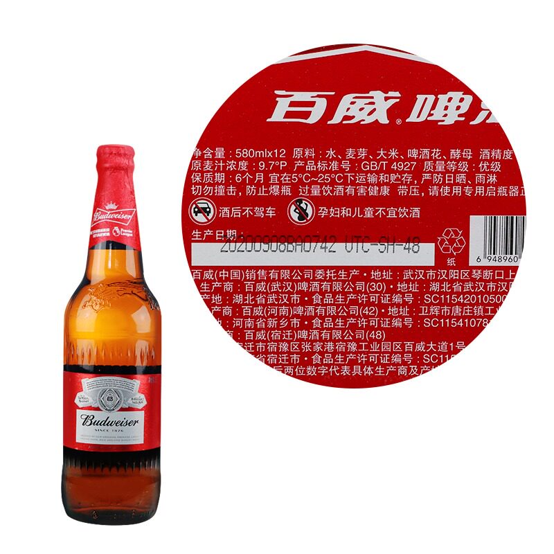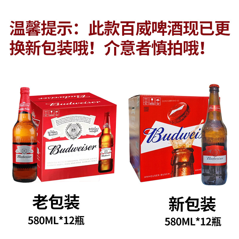 淘宝(2箱价)Budweiser/百威啤酒瓶装百威啤酒580ML*12瓶*2整箱正品