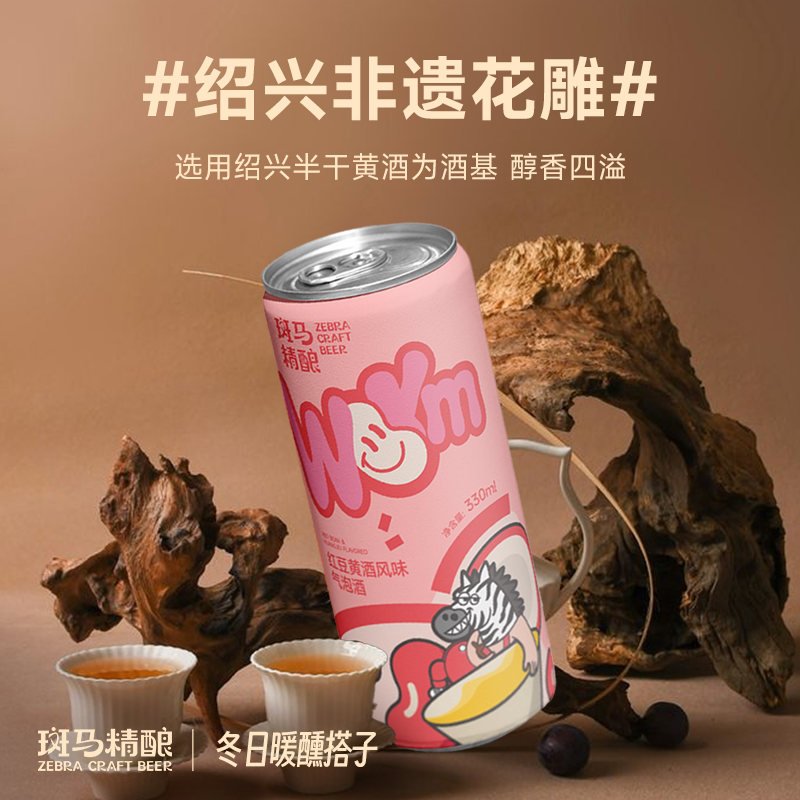 天猫【天猫U先】斑马精酿红豆黄酒+坚果饼干啤酒330ml*2罐