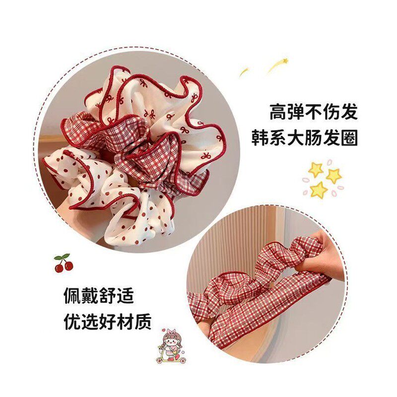 淘宝红色甜美波点大肠马尾发圈发绳丸子2026高级头饰发饰新款红色头绳