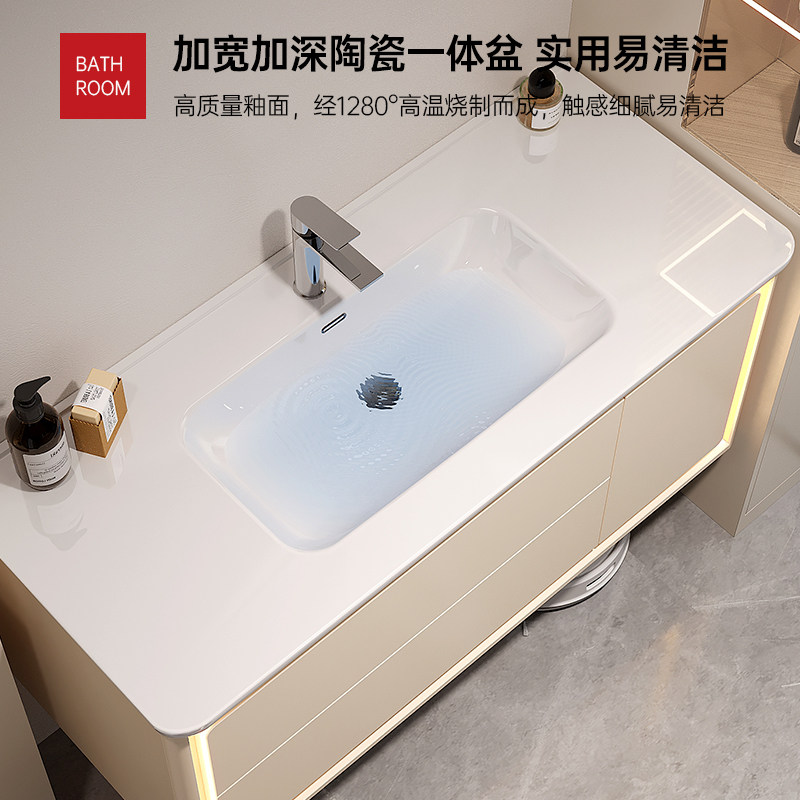 淘宝2025新款智能浴室柜奶油风陶瓷一体盆洗漱台池卫生间洗脸盆洗手台