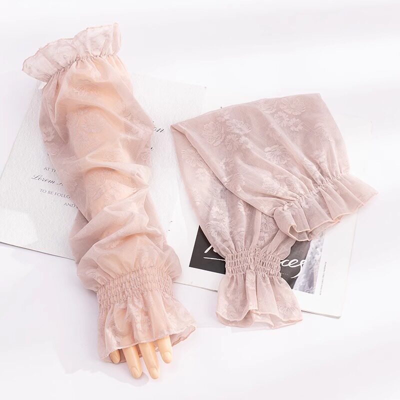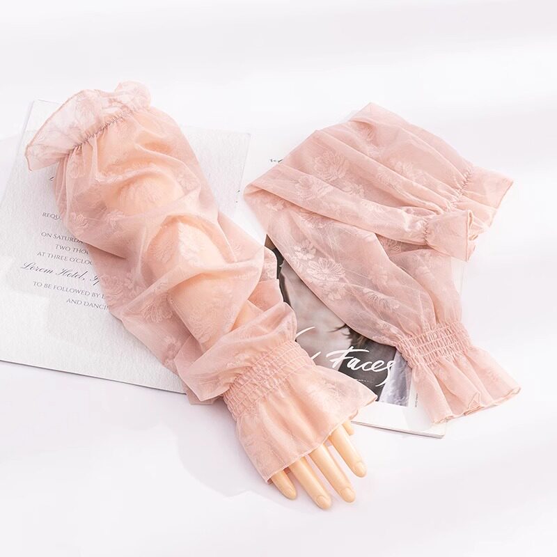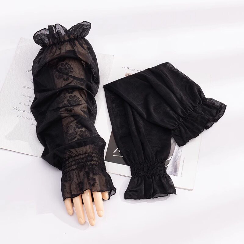 天黑色宽松网纱袖套防晒防紫外线蕾丝女士冰丝夏季骑行手套薄款手袖