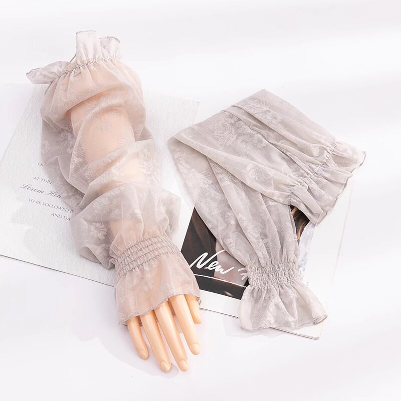 黑色宽松网纱袖套防晒防紫外线蕾丝女士冰丝夏季骑行手套薄款手袖