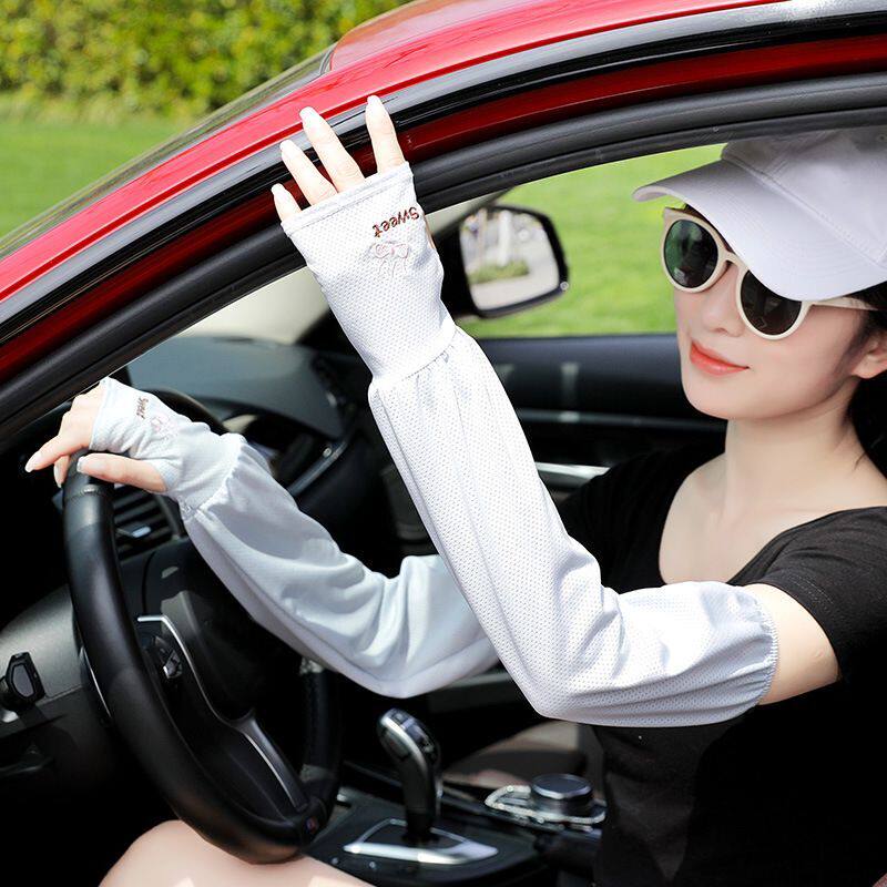 天防晒手袖护臂女冰丝薄袖套宽松开车冰袖防紫外线户外大码加长骑行