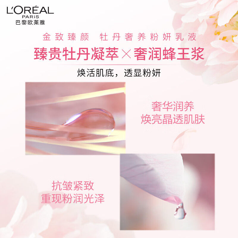 【自营】欧莱雅牡丹精萃水乳液洁面霜礼盒套装,专为追求奢宠护肤体验的女性打造。精选珍贵牡丹精萃,融合先进护肤科技,集补水、保湿、紧致、抗皱于一体。洁面乳温和净澈,焕现清透肌底;精华水质感清润,深层渗透锁水;乳液轻盈易吸收,持续滋养修护,提升肌肤弹性与光泽。全套搭配使用,层层呵护,有效淡化细纹,重塑紧致轮廓,令肌肤细腻柔滑、饱满透亮。精美礼盒包装,自用悦己或赠礼亲友皆宜,是高端护肤的优选之选,开启奢润焕颜之旅。