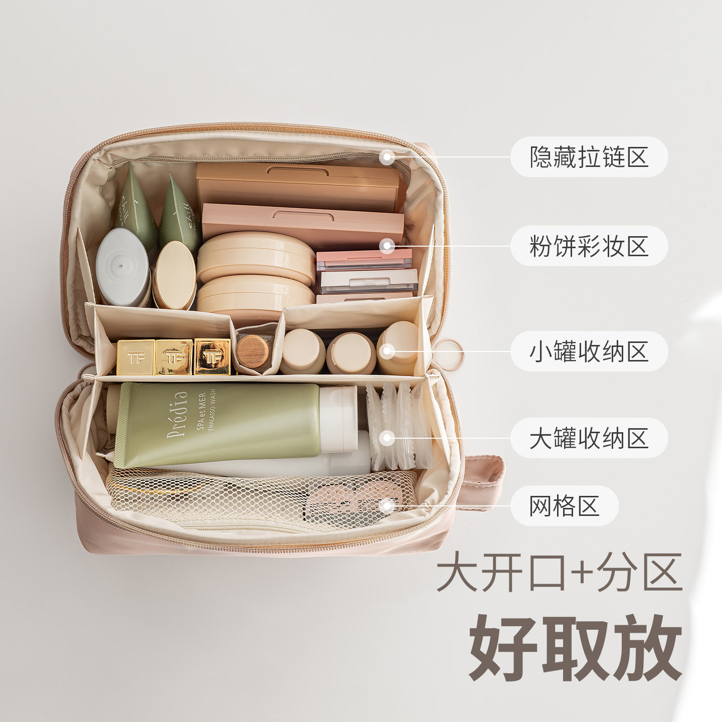 双宽开口大容量!蓬松化妆包女2025新款高端旅行便携式洗漱收纳包