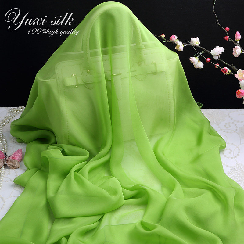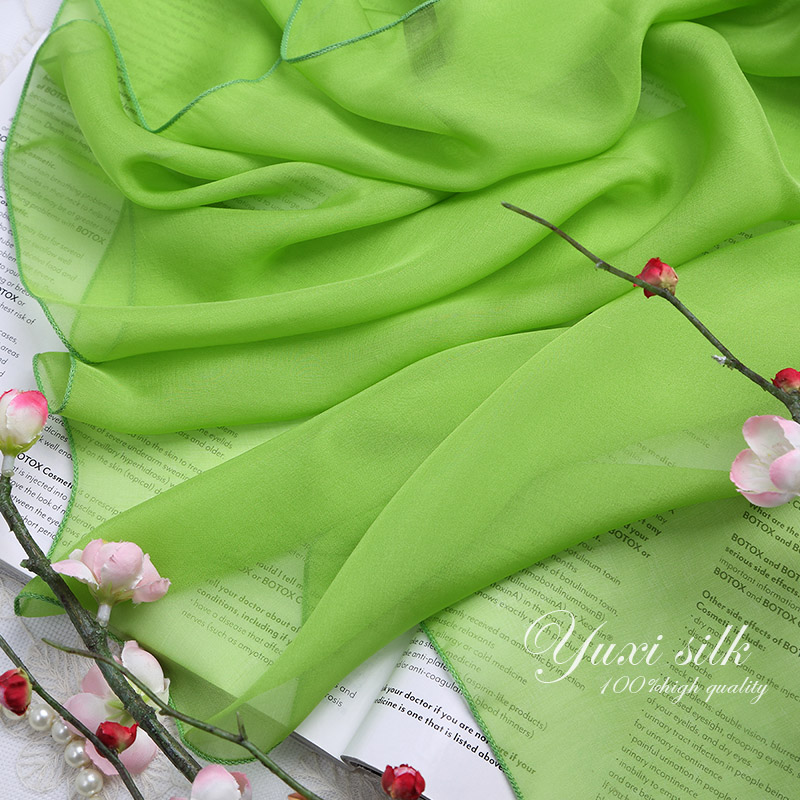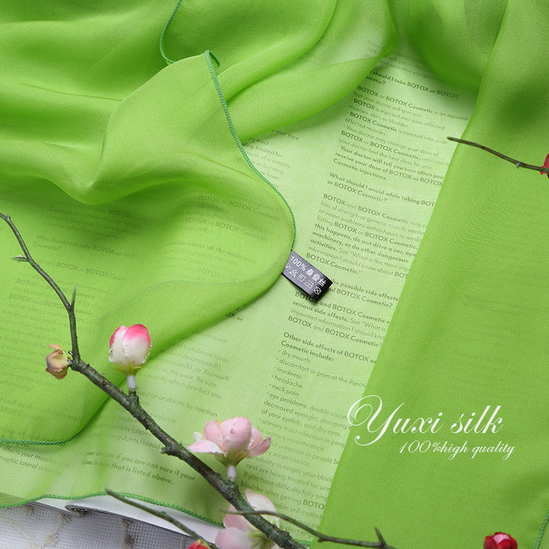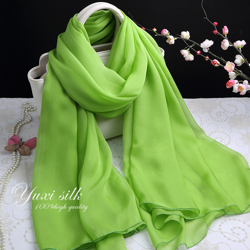 天猫果绿色纯色100%桑蚕丝长款真丝丝巾披肩女纱巾春秋冬夏季丝绸围巾