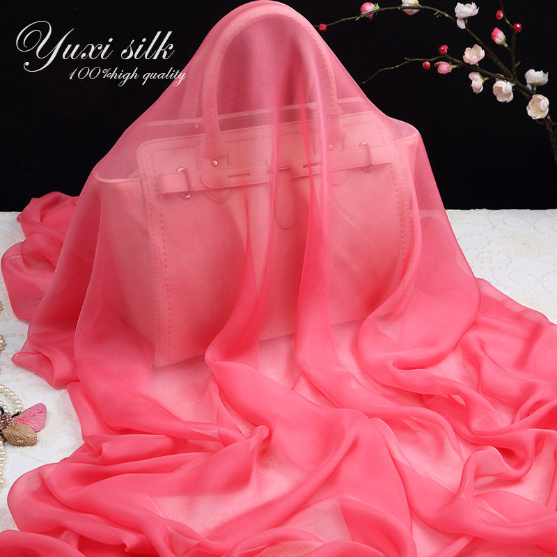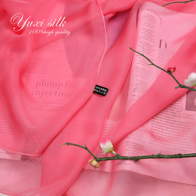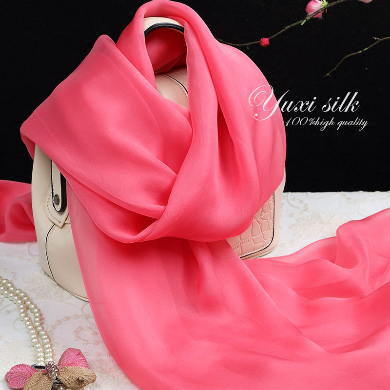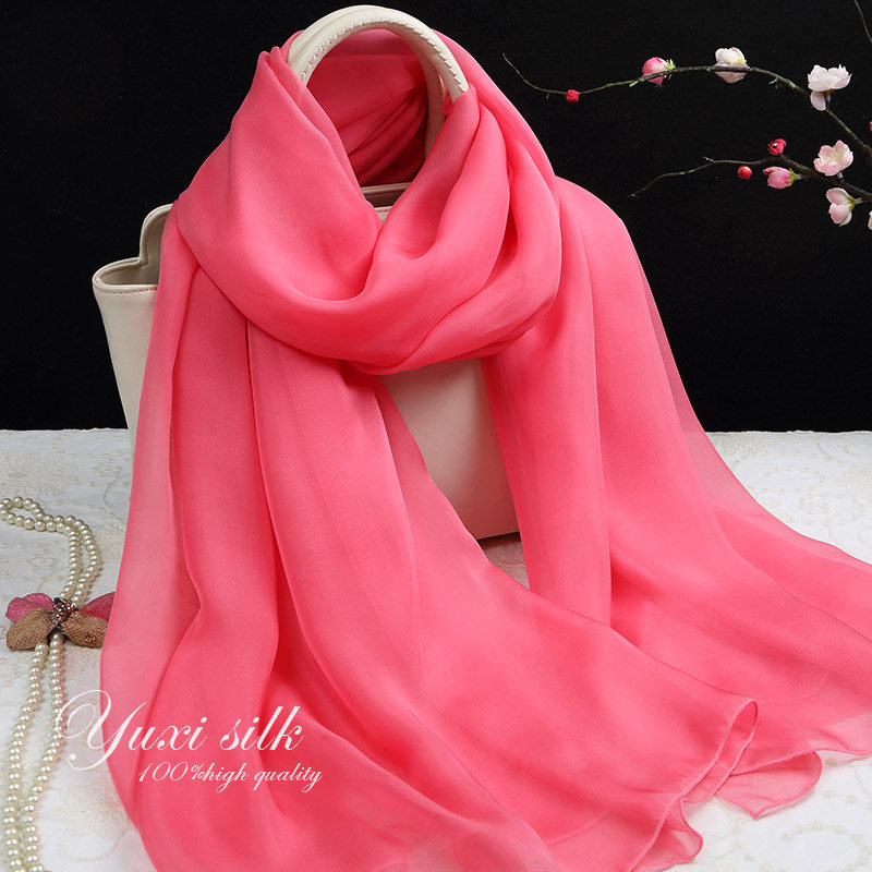 天猫西瓜红纯色100%桑蚕丝长款真丝丝巾披肩女纱巾春秋冬夏季丝绸围巾