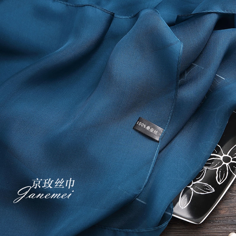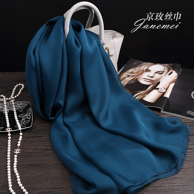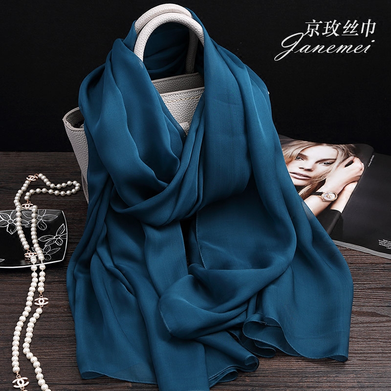 淘宝靛蓝色纯色桑蚕丝真丝丝巾长款围巾女大披肩薄丝绸纱巾春秋冬夏季