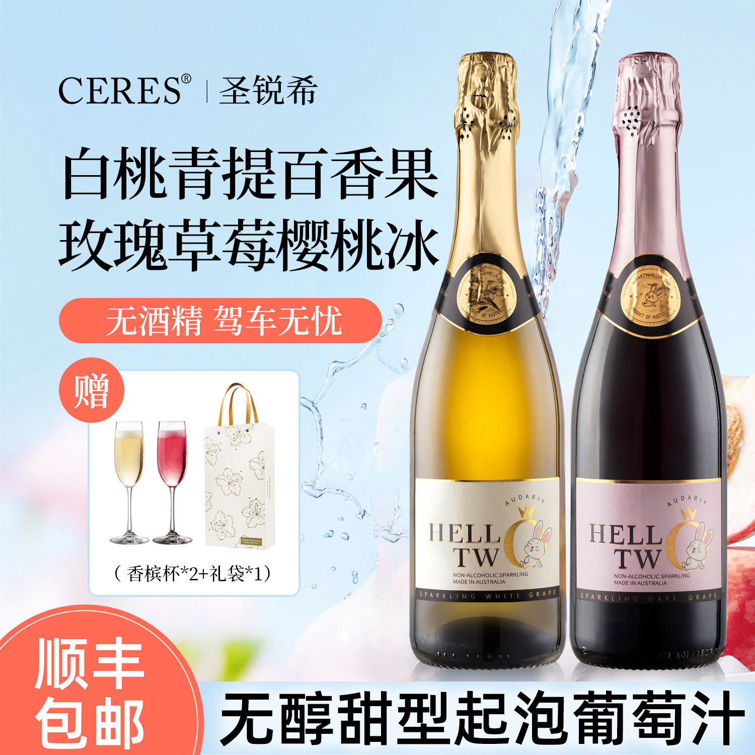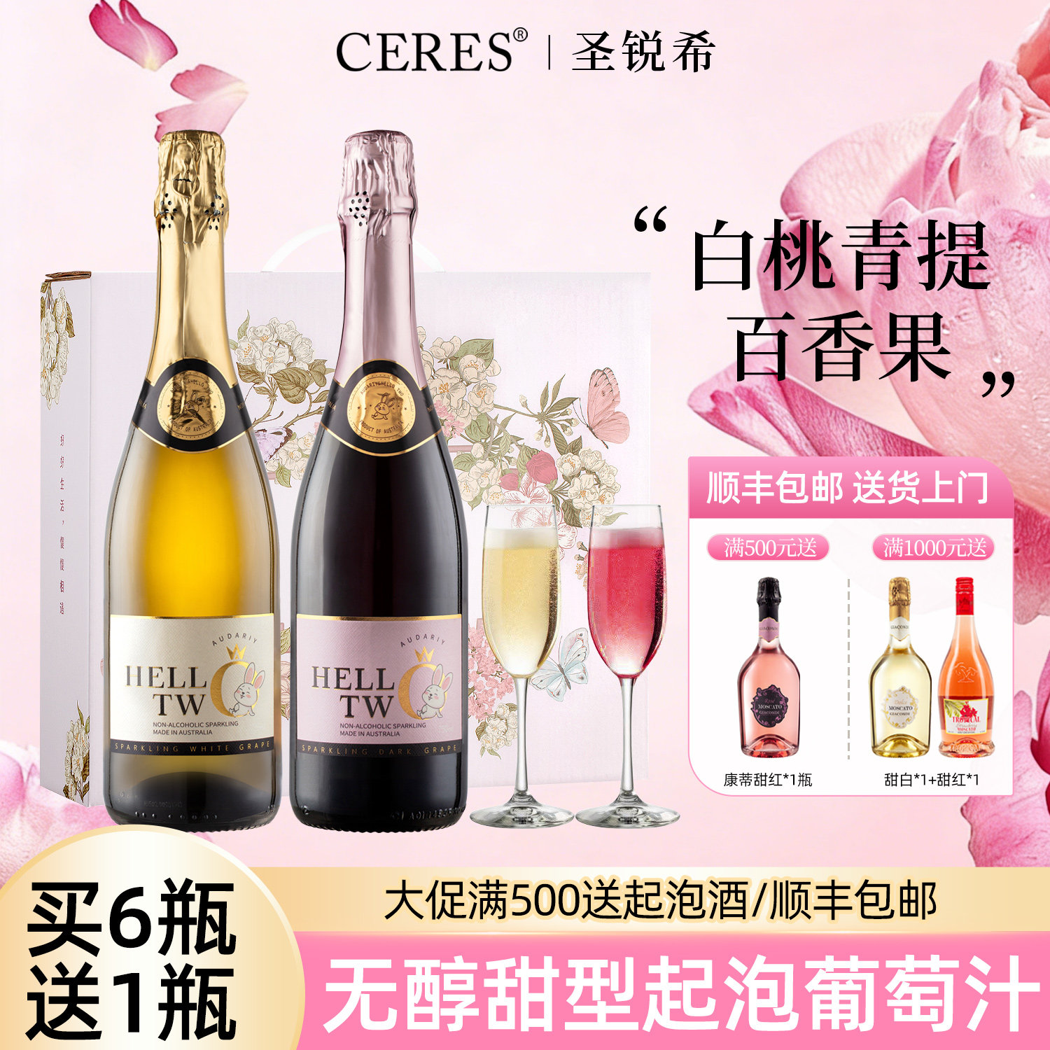 天猫无醇起泡酒无酒精甜白红气泡葡萄汁0度女士微醺果酒生日新婚礼盒
