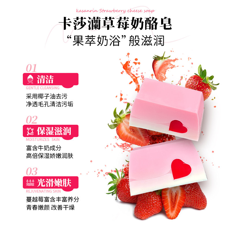天猫卡莎灡草莓奶酪皂手工皂滋润保湿嫩肤洗护二合一洗脸洗澡沐浴香皂