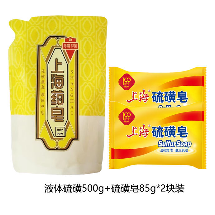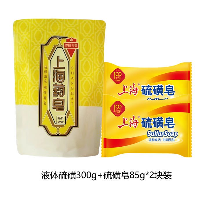 天猫上海药皂液体硫磺人参硫磺补充袋装300g500g硫磺皂80g2块装