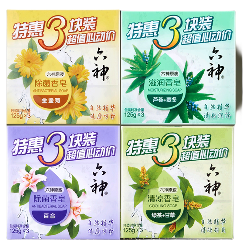 天猫六神特惠百合除菌香皂健康呵护皂洁面舒爽沐浴皂家庭组合装旗舰店