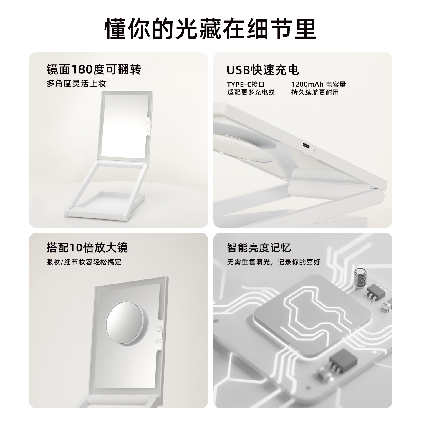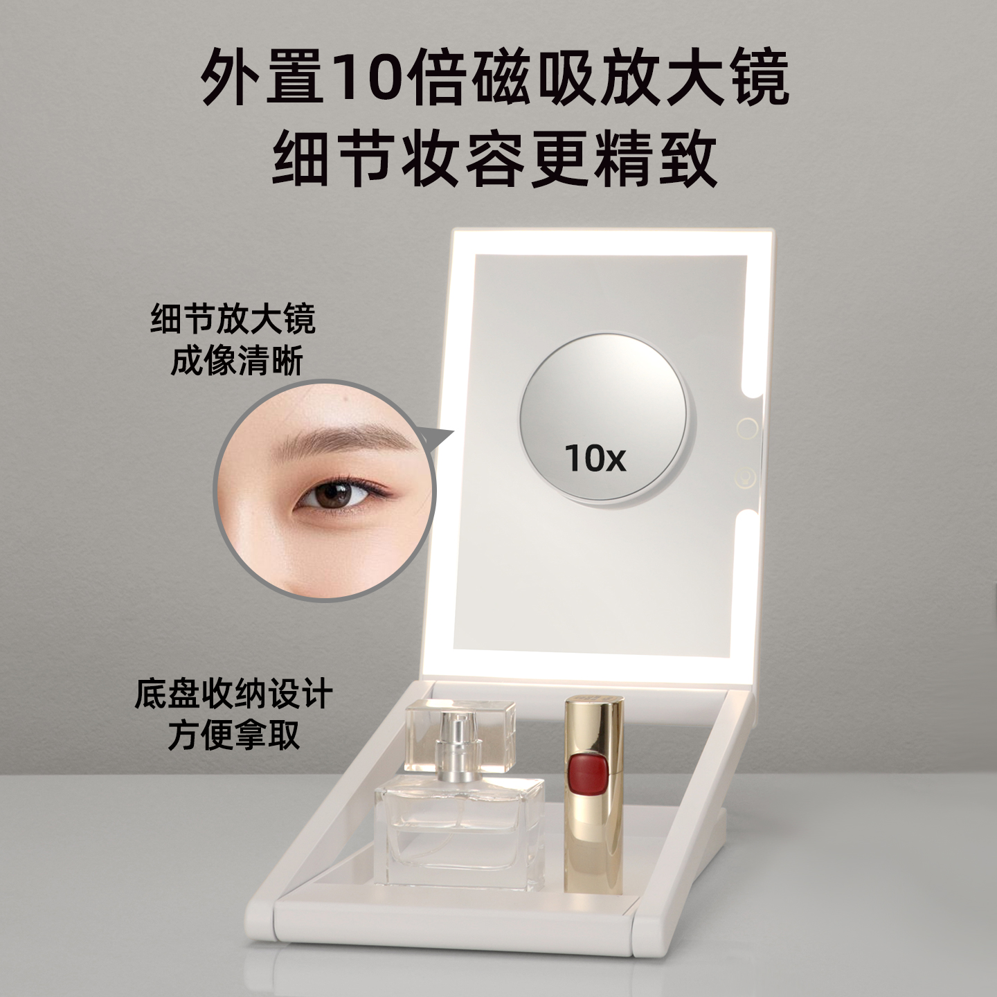 LED折叠化妆镜双面带灯台式桌面智能梳妆镜 放大美容镜可升降高度