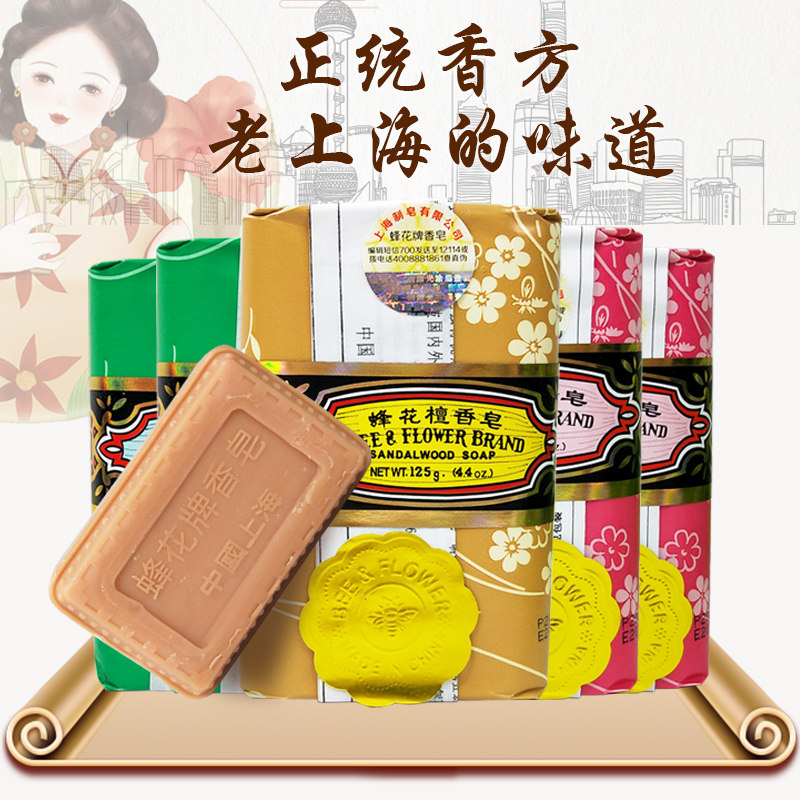 淘宝蜂花檀香皂玫瑰茉莉125g*5块组合沐浴皂洗脸去螨国货正宗上海香皂