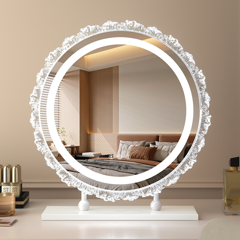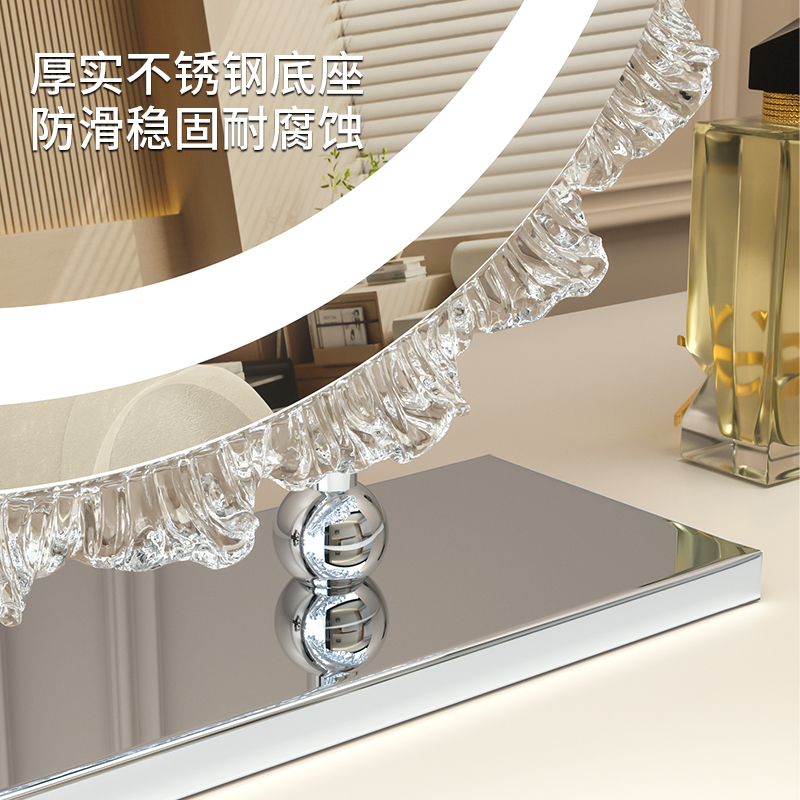 天MUID化妆镜带灯大圆镜桌面台式补光镜子送礼轻奢高级led梳妆台镜
