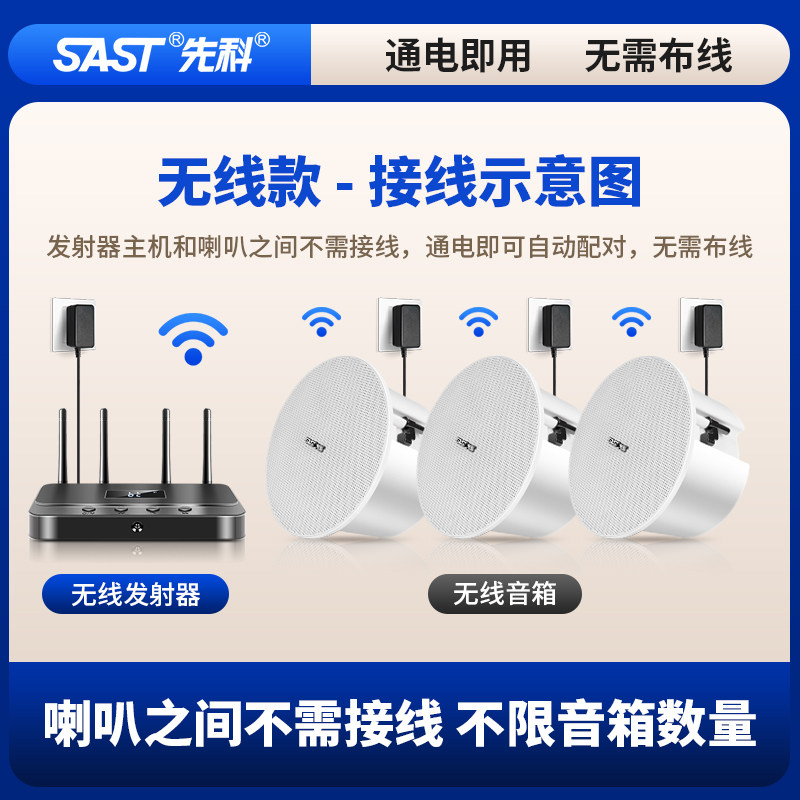 天猫先科K1无线蓝牙壁挂式音响吸顶重低音箱商用门店铺专用餐厅会议室