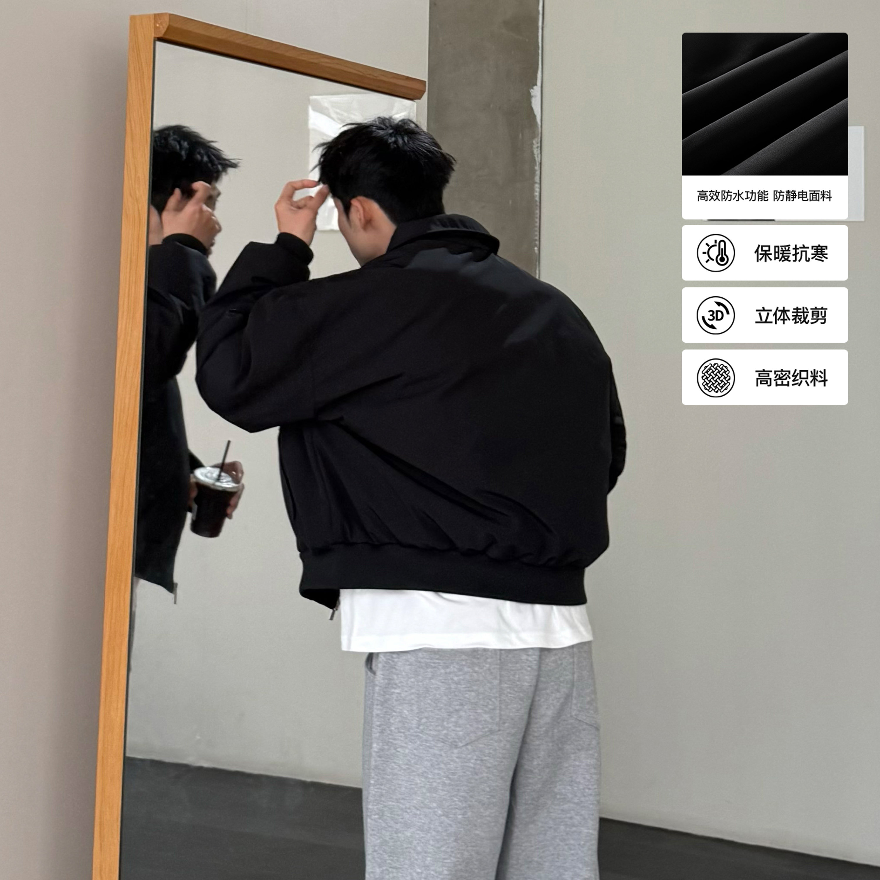 新款潮牌男装美式复古立领飞行夹克加厚保暖拉链外套青年时尚棉服