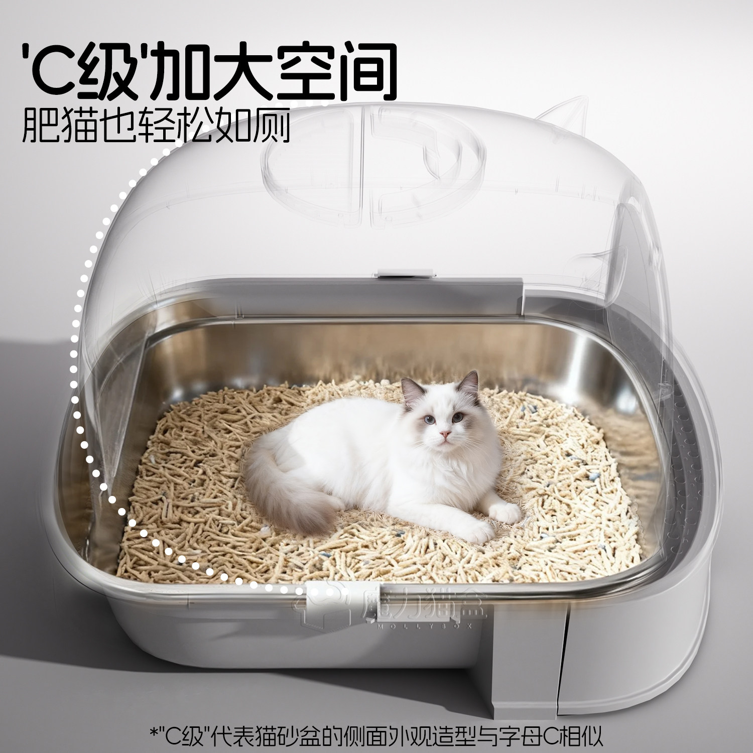 这款超大号全封闭抽屉式不锈钢猫砂盆,专为多猫家庭或大型猫咪设计,采用食品级304不锈钢材质,坚固耐用、防腐防锈,清洁更省心。全封闭式结构有效隔绝异味,搭配可拆卸顶盖与防砂踏板,防止猫砂外溅,保持家居整洁。抽屉式设计方便抽拉清理,无需弯腰即可轻松更换猫砂,特别适合幼猫、老年猫或行动不便的猫咪使用。底部加高防漏边,搭配密封门帘,进一步提升隔臭与防外溢效果。简约现代外观,易搭配各种家居风格,是注重卫生与实用性的养猫家庭的理想选择。