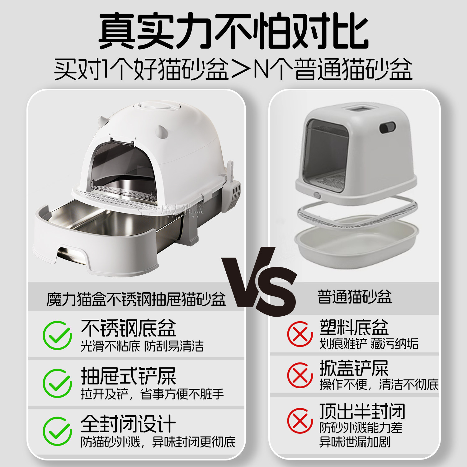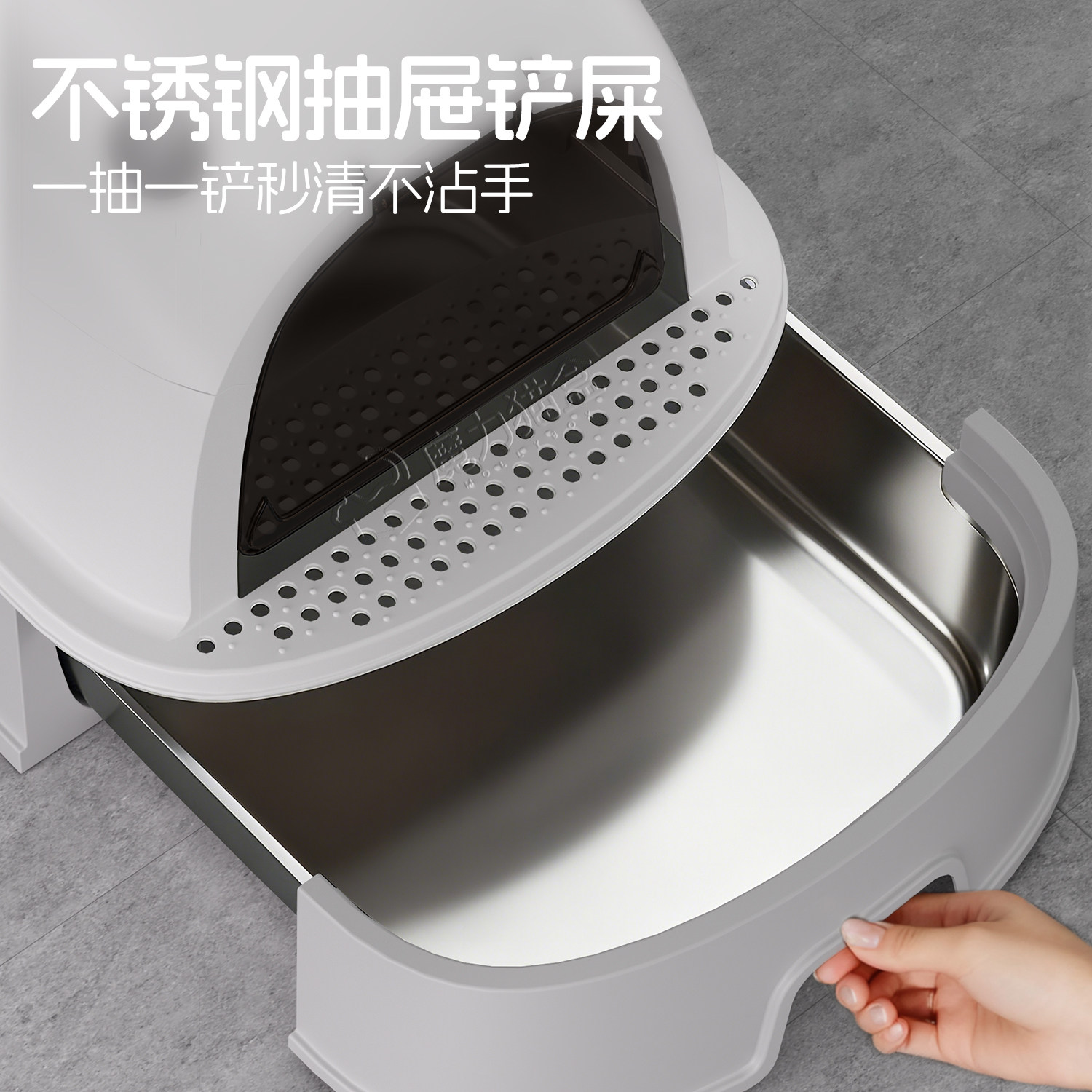 天猫不锈钢猫砂盆超大号全封闭抽屉式隔臭防砂外溅幼猫沙盆子猫咪用品