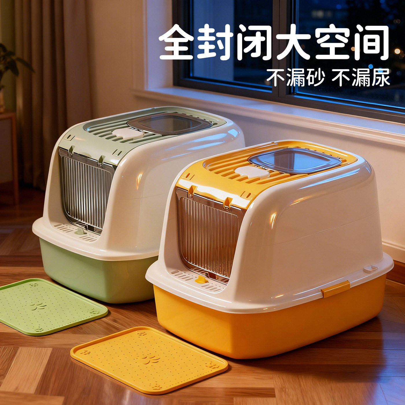 这款超大号全封闭猫砂盆专为幼猫及成猫设计,空间宽敞,有效防止猫砂外溅,保持家居整洁。采用高围挡设计,搭配可拆卸顶盖和双向门帘,既保障猫咪隐私,又减少异味扩散,内置活性炭过滤层,持久锁臭,清新空气。入口高度适中,幼猫进出轻松,底部加深防漏托盘,避免猫砂带出。材质安全耐用,易拆卸清洗,维护方便。整体结构稳固,适合多猫家庭或大型猫咪使用,是提升猫咪如厕体验与居家环境的理想选择,让养宠更省心、更卫生。