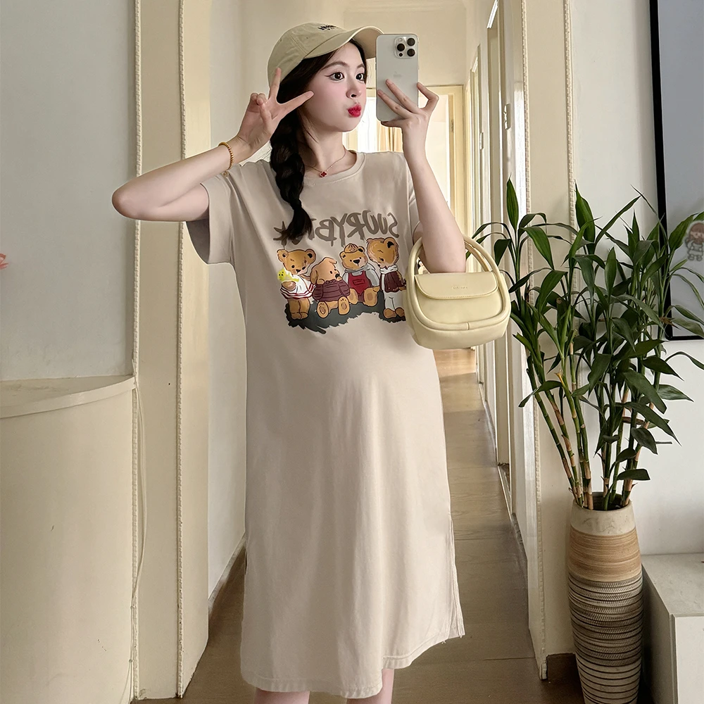 这款夏季孕妇T恤上衣连衣裙,专为孕妈设计,融合时尚与舒适。采用宽松显瘦版型,巧妙遮掩孕期身形变化,尤其适合小个子妈妈,中长款设计拉长腿部线条,视觉更显高挑。韩版简约风格,清新配色与柔软亲肤面料,带来清爽透气体验,轻松应对炎热天气。弹力腰围设计,不勒肚子,随孕期变化自由调节,穿着更安心。无论是日常出行、居家休闲还是孕期写真,都能展现优雅孕味。集实用性与时尚感于一身,是孕妈夏季衣橱的必备单品,让美丽与舒适同行,轻松度过每一个美好夏日。