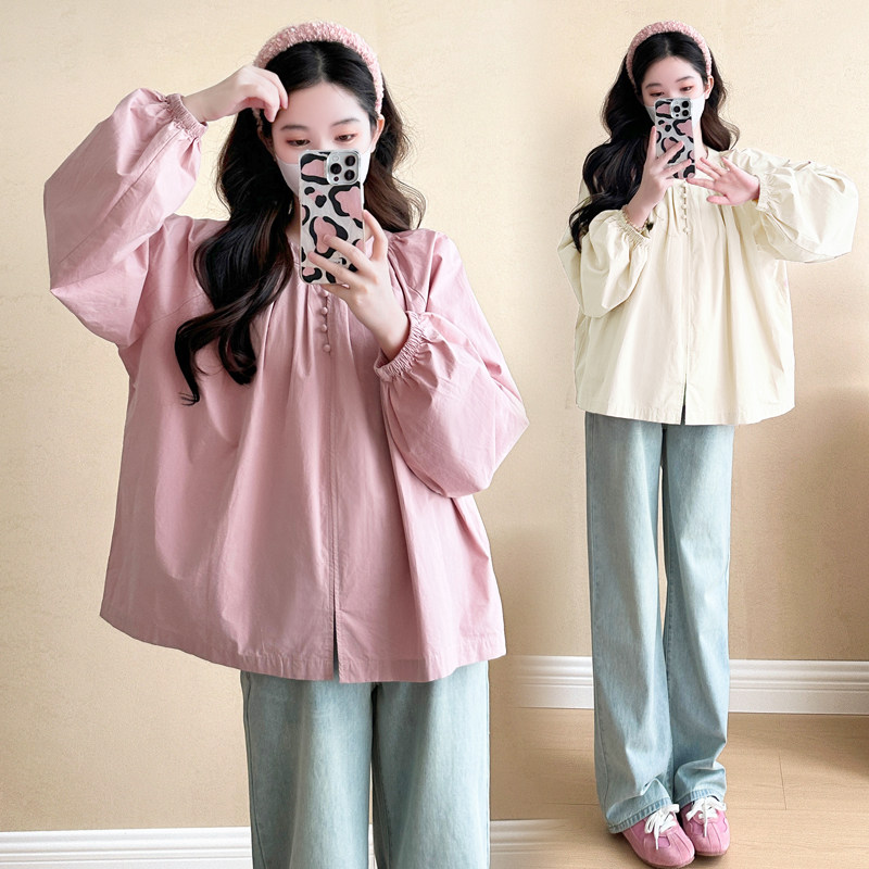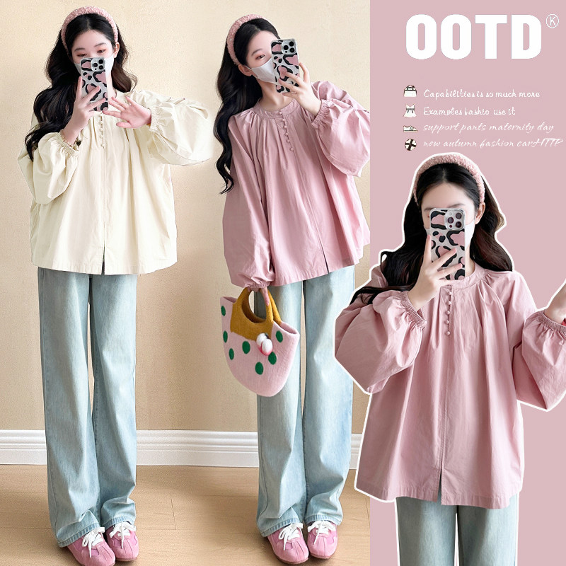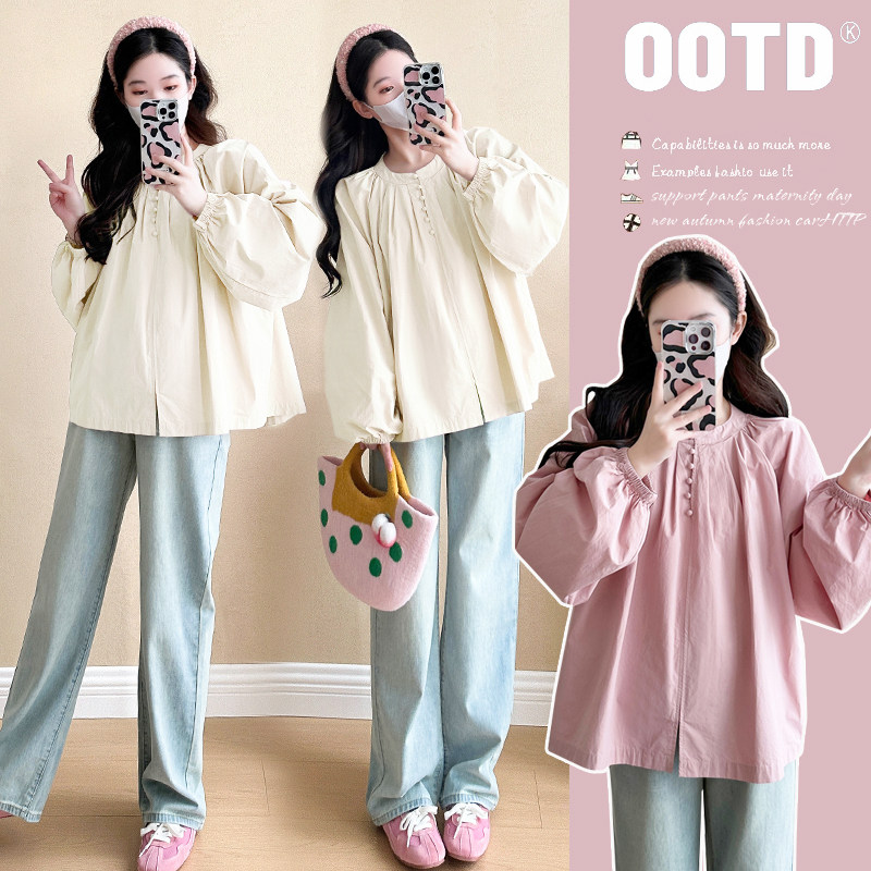 淘宝孕妇装春装时尚简约灯笼袖上衣宽松大码休闲娃娃衫春季怀孕衬衫春