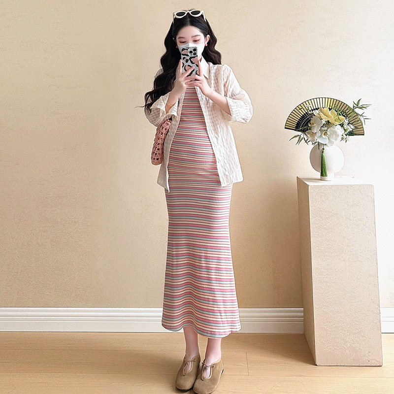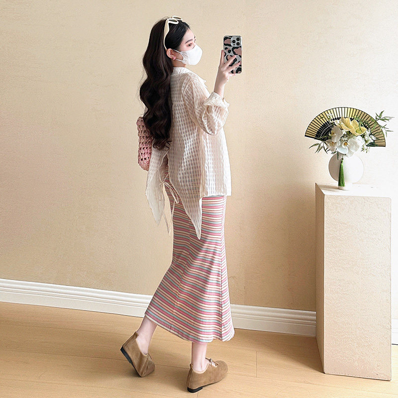 淘宝孕妇装春装长袖衬衫春季条纹吊带裙2026新款孕妇套装连衣裙两件套
