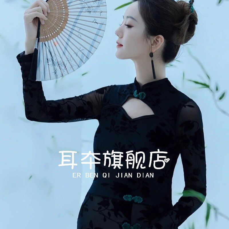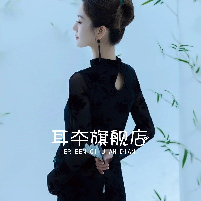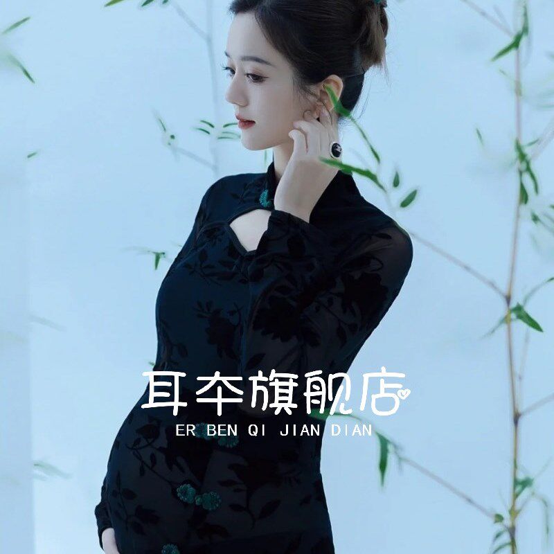 淘宝新款影楼孕妇拍照服装孕期妈咪照复古旗袍黑色艺术拍照写真连体裙