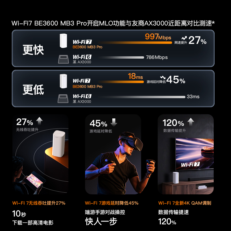 天猫Tenda腾达子母路由器WiFi7全屋覆盖穿墙王3600兆大平层大户型别墅字母Mesh组网家用高速千兆移动电信2.5G口