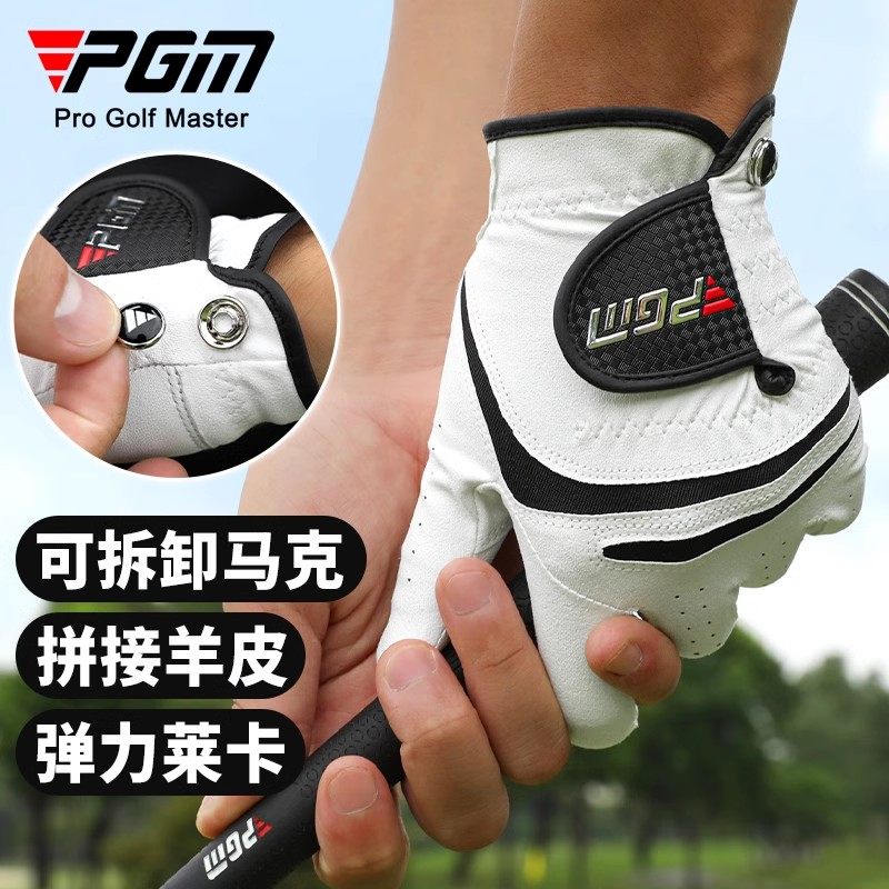 淘宝PGM 高尔夫手套男士自带马克羊皮拼接超纤布透气单只左右双手用品