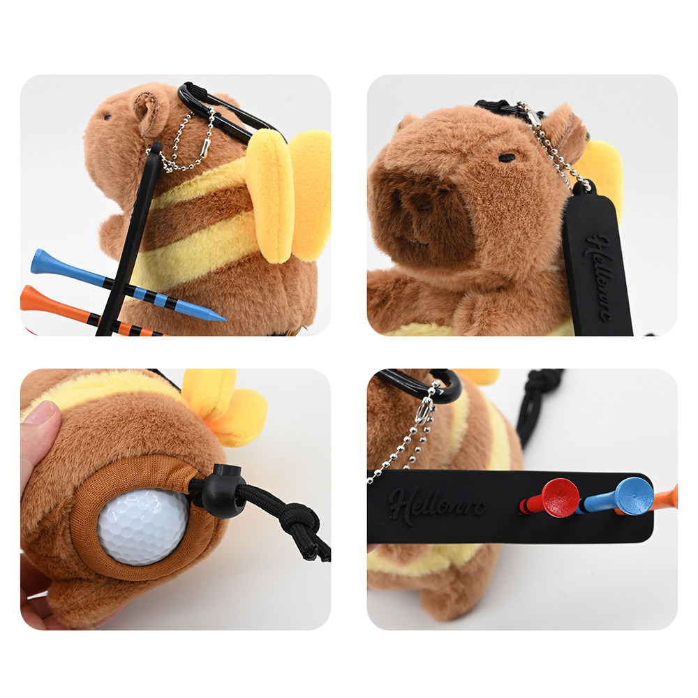 淘宝高尔夫小球袋可爱卡皮巴拉球包 毛绒带挂钩便携放球钉装2颗球挂件