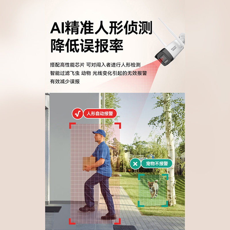 海康威视无线WiFi监控摄像头是一款专为商铺、门口及室外环境设计的高清安防设备。支持2.4GHz WiFi连接,安装便捷,无需复杂布线。用户可通过手机APP远程实时查看监控画面,随时随地掌握现场动态。具备1080P高清画质和强效夜视功能,即使在漆黑夜晚也能清晰捕捉细节。支持移动侦测报警,异常情况即时推送通知,提升安全防护等级。防水防尘设计,适应各种恶劣天气,确保全天候稳定运行。无论是店铺防盗、门口监控还是庭院看护,海康威视无线摄像头都提供可靠、智能的安防解决方案,是家庭与商户的理想选择。