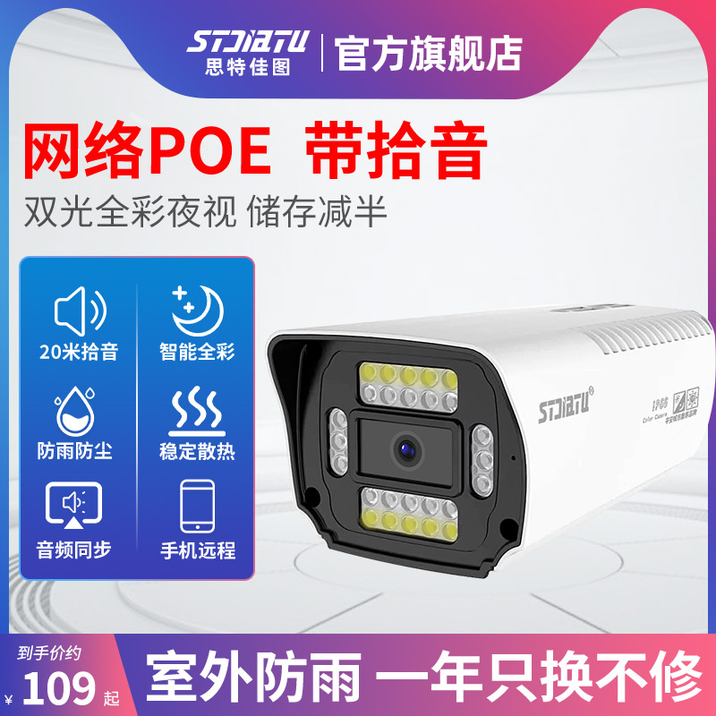 天猫POE网络摄像头高清家用红外全彩智能夜视室外数字监控器带音频5MP