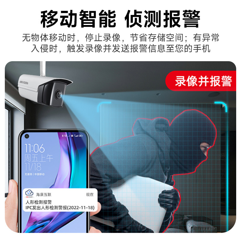 天猫海康威视网络摄像头400万poe商用高清夜视手机远程室外广角监控器