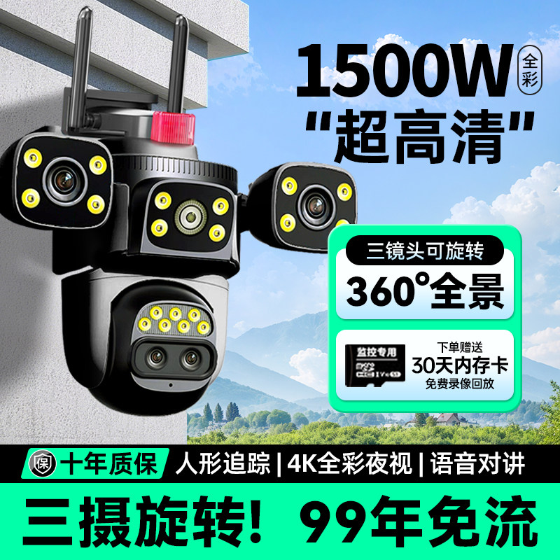 天猫摄像头360度无死角无线监控家用手机远程三画面室外高清十大名牌