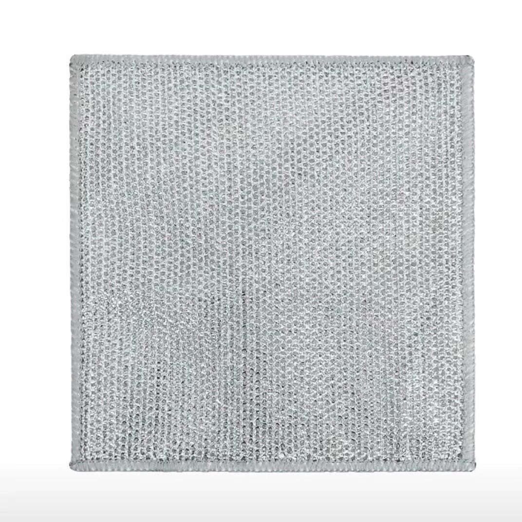 银丝抹布是厨房清洁的得力助手,专为洗锅、洗碗设计,采用优质不锈钢丝与纤维复合材质,去污力强且不伤锅具表面,尤其适用于不粘锅、铁锅、不锈钢锅等。其独特的银丝结构能快速分解油渍,配合少量洗洁精即可轻松去除顽固污垢,速干特性有效防止细菌滋生,卫生更安心。柔软纤维部分可用于擦拭餐具和台面,一布多用,环保耐用。不易变形、不掉屑,清洗后悬挂晾干即可重复使用,是家庭厨房的清洁神器,让洗碗洗锅变得高效又省心。