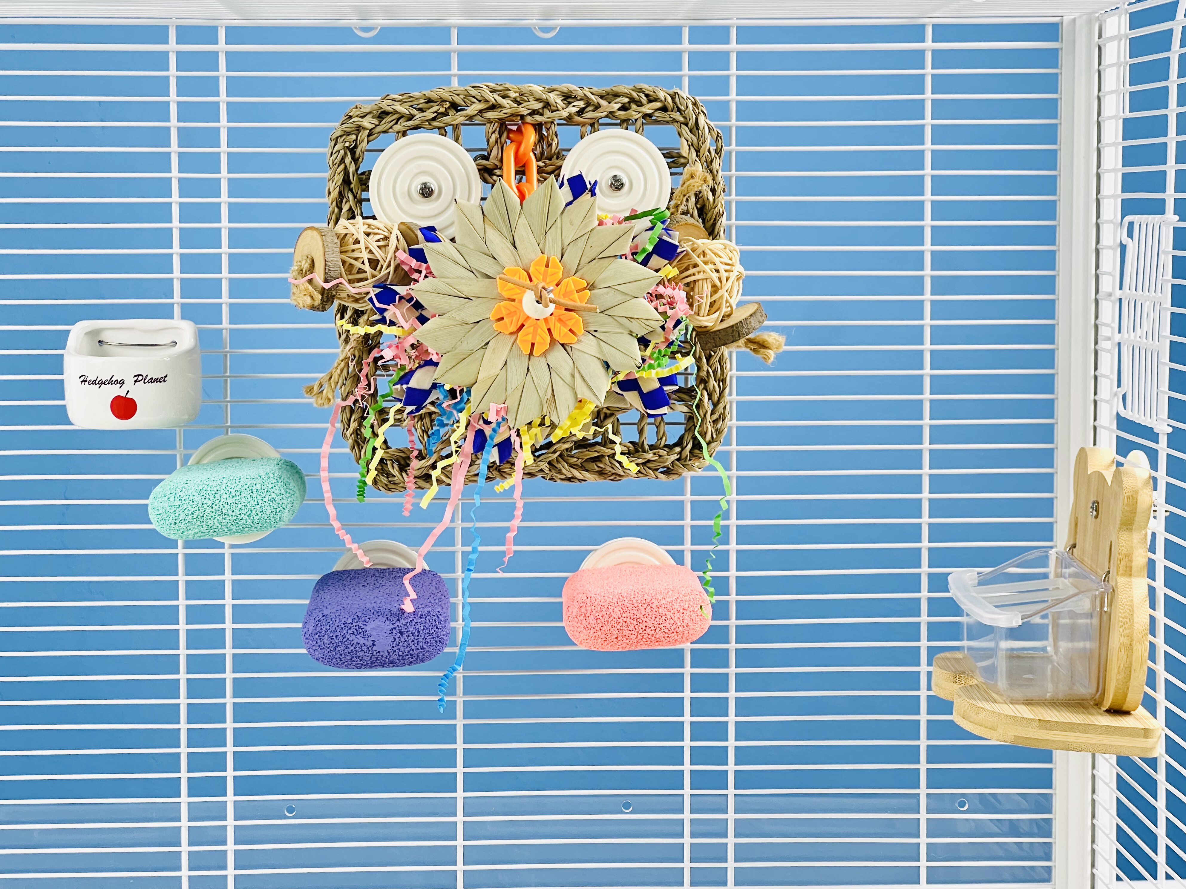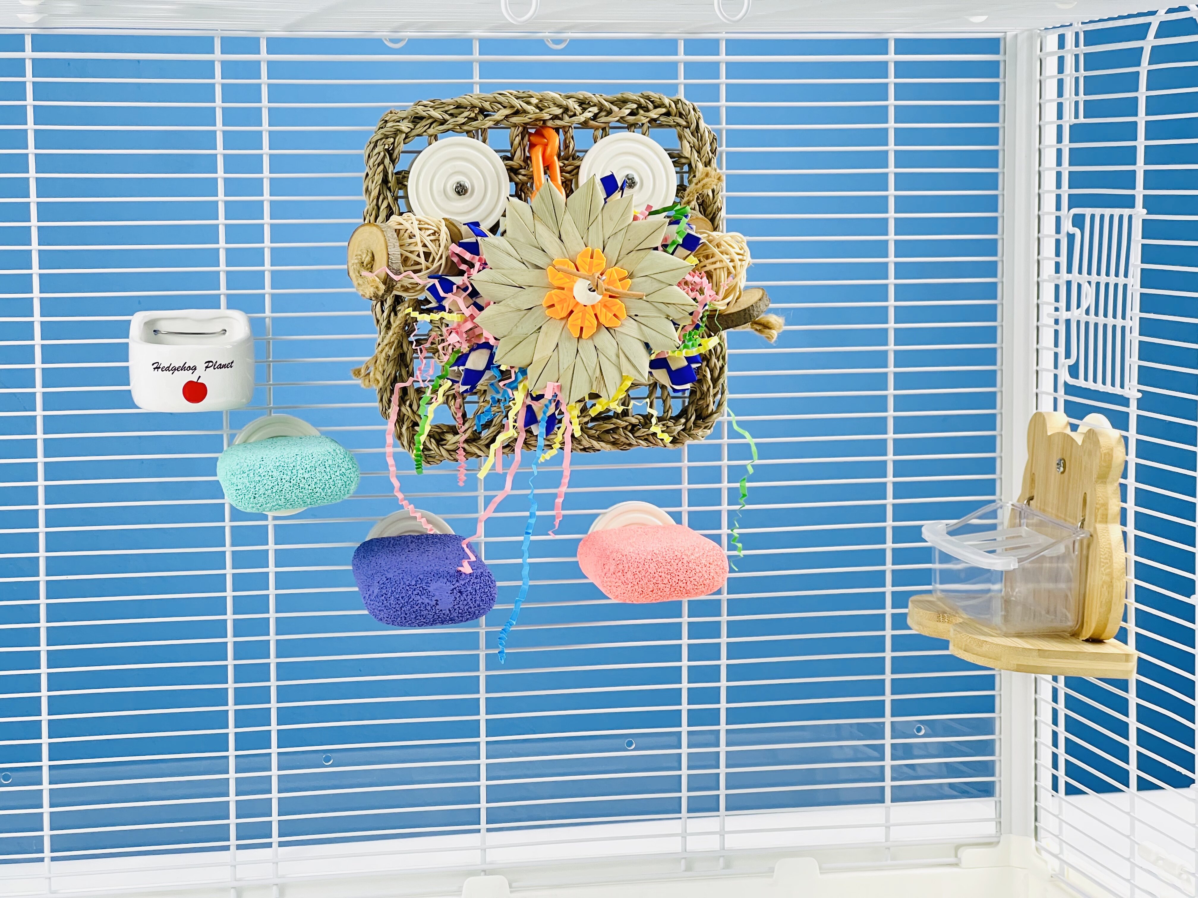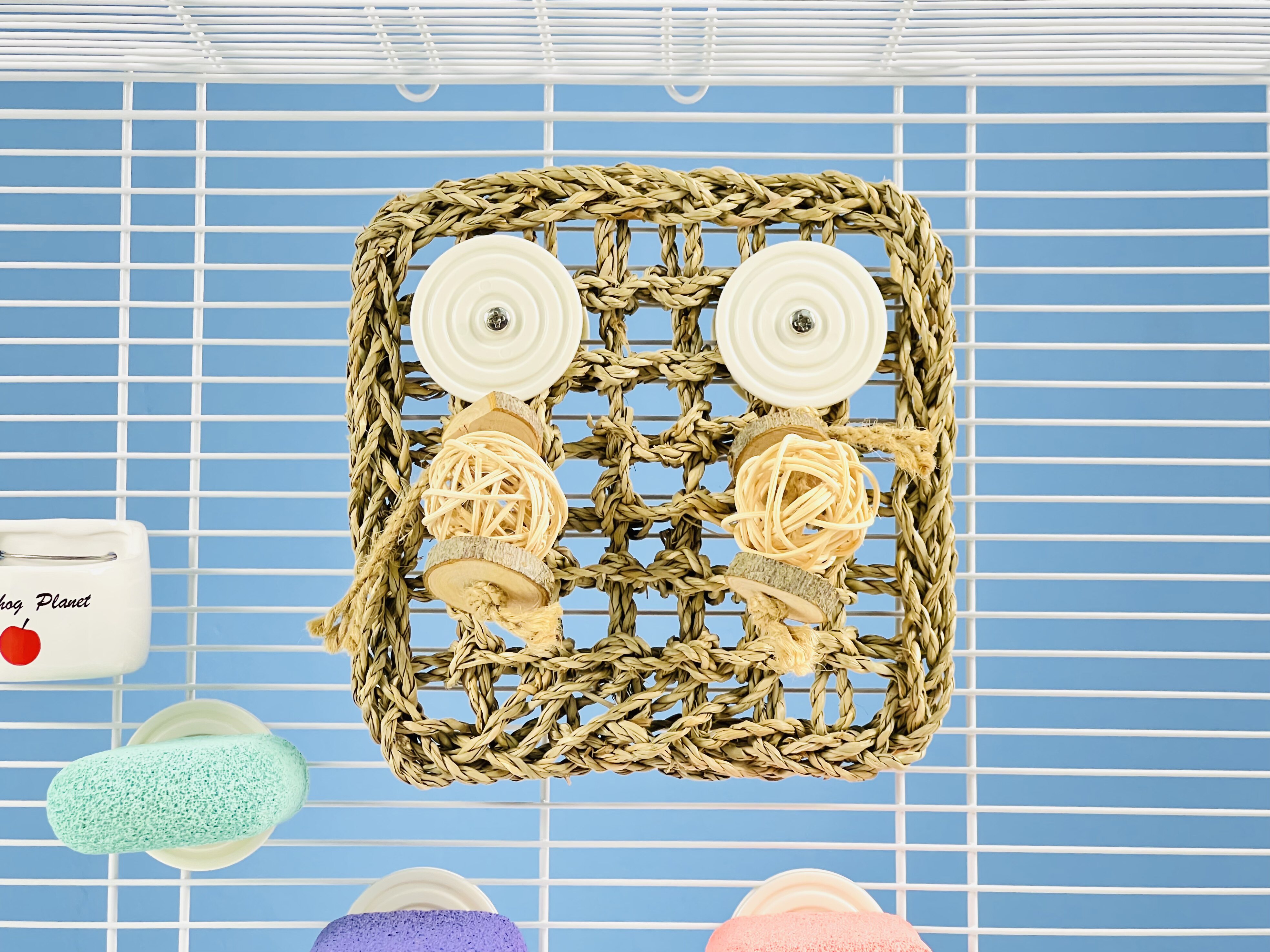 刺星球鹦鹉啃咬攀爬网挂玩具,专为牡丹鹦鹉、虎皮鹦鹉等小型鸟类设计,集娱乐、磨嘴、锻炼于一体。采用环保天然麻绳与无毒木材制作,安全耐用,有效满足鸟儿啃咬天性,预防喙部过长。独特的网格结构便于鸟儿攀爬跳跃,增强运动量,促进身心健康。顶部配有挂钩,可轻松悬挂于鸟笼内,节省空间。色彩鲜艳的装饰爬梯不仅提升笼内美观度,还能激发鸟儿探索欲。这款多功能玩具兼具实用性与趣味性,是宠物鸟日常陪伴的理想选择,帮助缓解孤独感,提升生活质量。