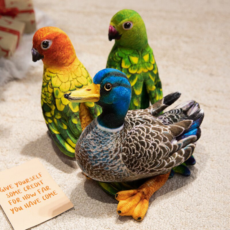 淘宝仿真鸟类毛绒玩具公仔可爱彩色鹦鹉玩偶摆件绿头鸭儿童创意礼物女