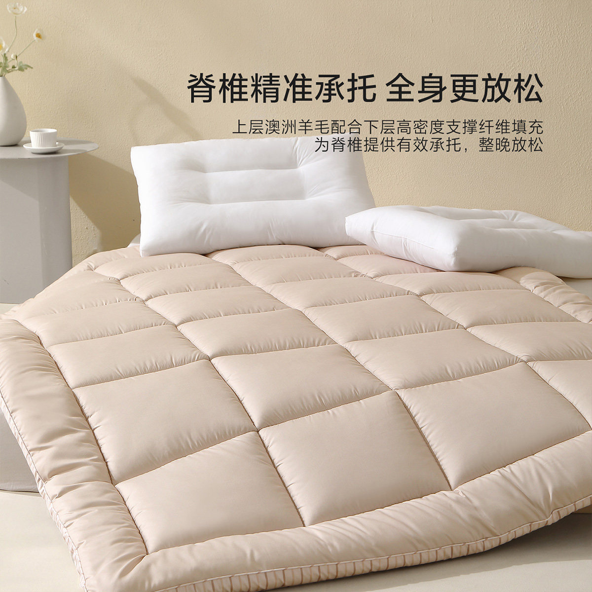 天猫水星家纺澳洲羊毛床垫抑菌床褥垫加厚榻榻米软垫子家用侘寂风床品