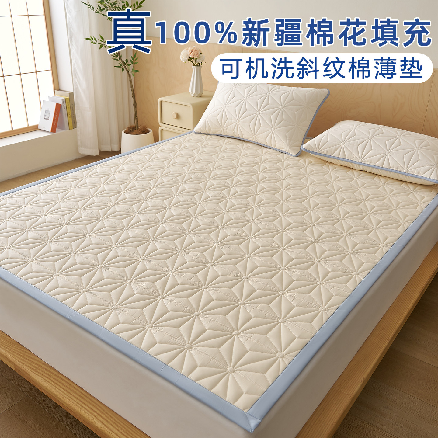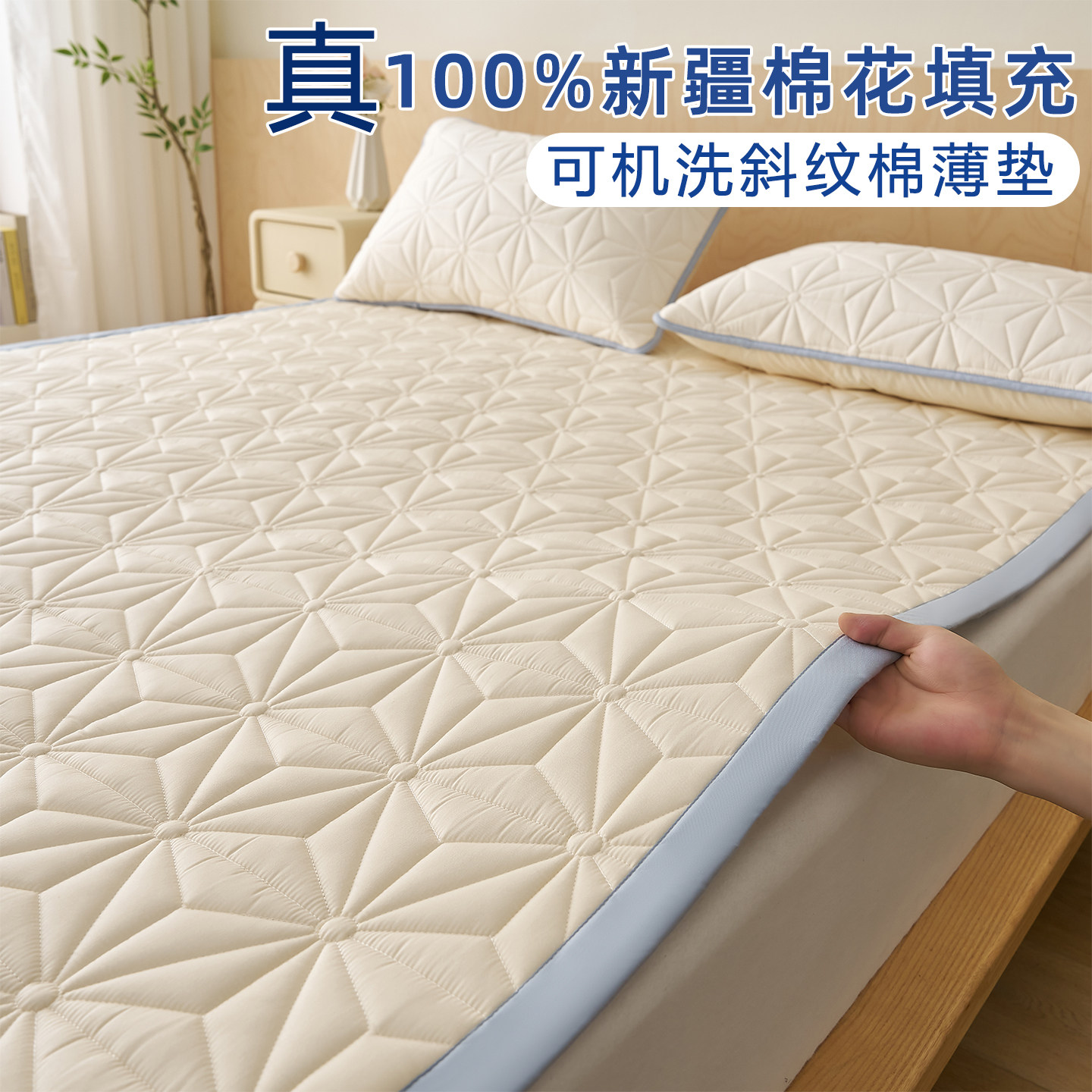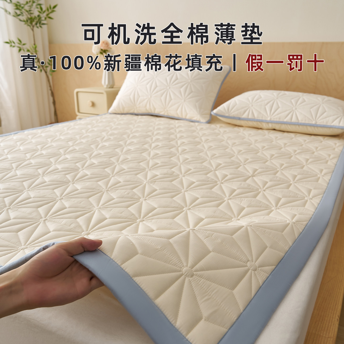 A类母婴100%棉花床垫,专为学生宿舍、家庭护垫设计,采用优质全棉材质,安全无刺激,通过国家A类婴幼儿安全标准,亲肤透气,呵护敏感肌肤。1cm薄款设计,轻盈便携,不占空间,适合铺在硬板床、上下铺或折叠床上,有效提升睡眠舒适度。垫背全棉填充,柔软适中,回弹性好,久用不变形。外层可拆卸清洗,卫生便捷。无论是学生住宿、租房过渡,还是婴儿临时睡眠使用,都是安心之选。环保健康,四季适用,让每一晚都睡得踏实安稳。