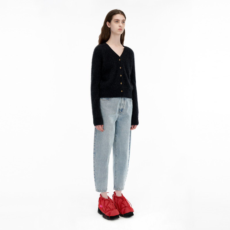 有品老钱~圆领100%纯山羊绒开衫女纯羊绒毛衣针织开衫秋冬外套