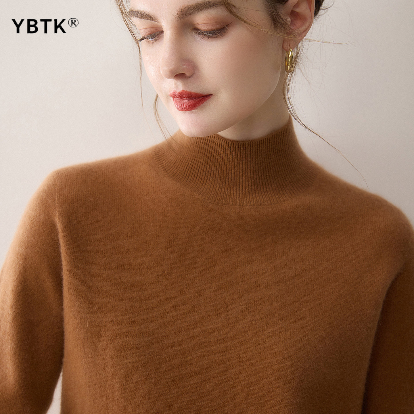 天猫鄂尔多斯市半高领羊绒衫女士2025冬季新款修身显瘦无缝针织打底衫
