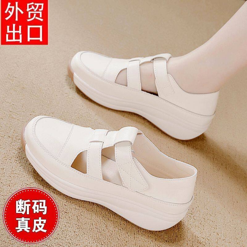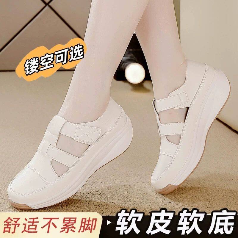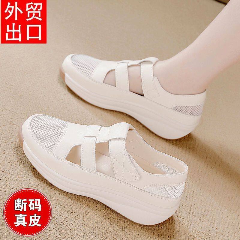 淘宝真皮网面镂空小白鞋女2025夏季爆款轻便透气妈妈凉鞋休闲舒适单鞋