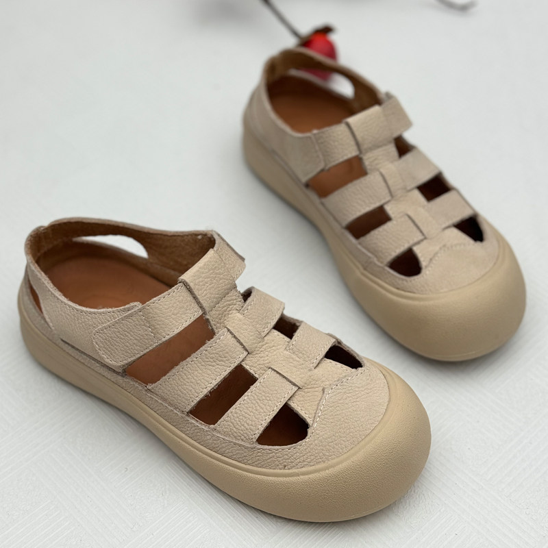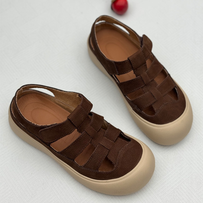 淘宝手工真皮复古妈妈凉鞋2025年夏季新款洞洞鞋透气休闲中老年女鞋