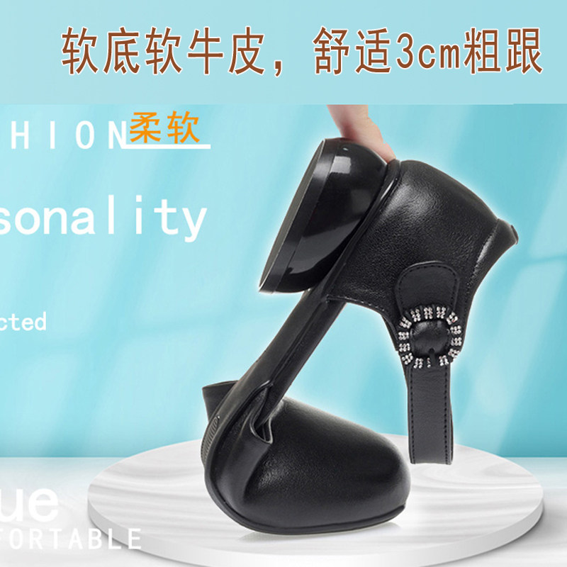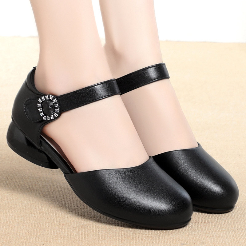 淘宝一字扣中空单鞋软底女士包头凉鞋女夏季真皮跳舞鞋中老年妈妈皮鞋