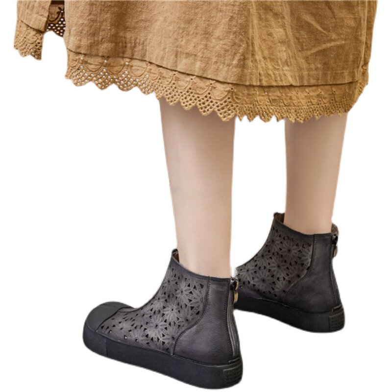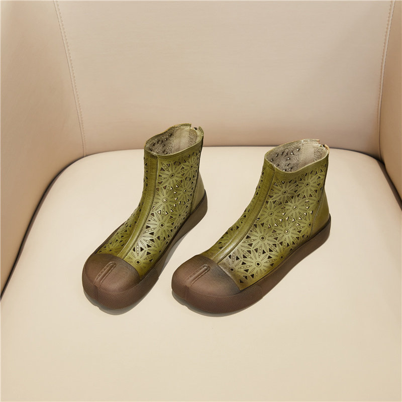 淘宝259复古擦色民族风坡跟凉鞋女高帮真皮镂空洞洞短靴包头妈妈凉靴