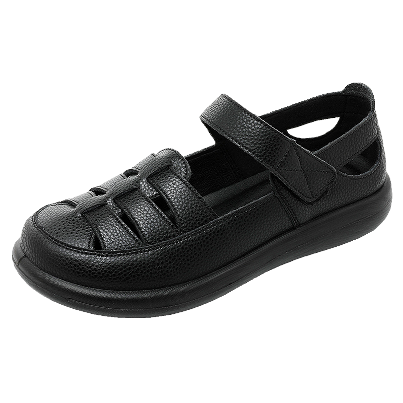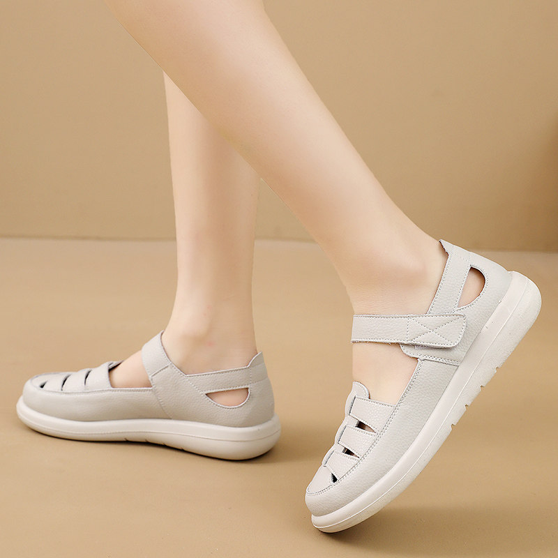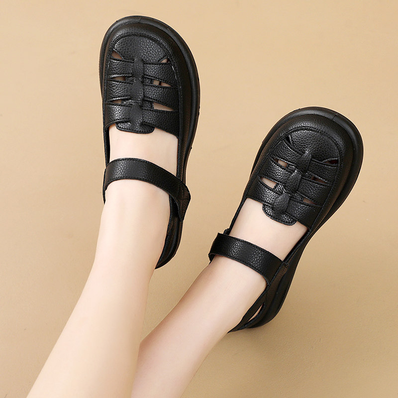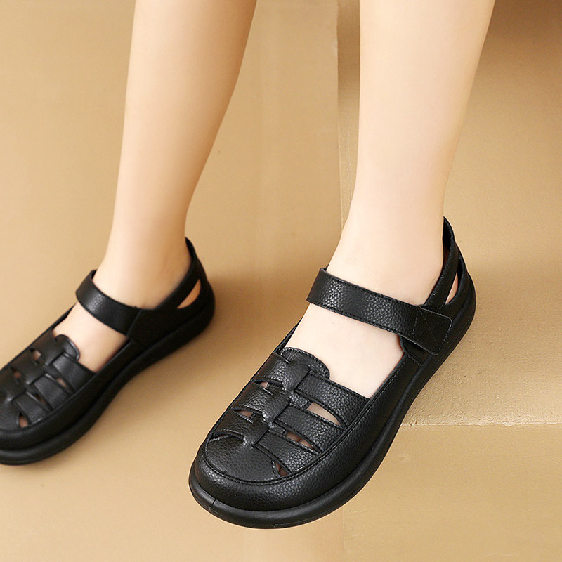 淘宝真皮软底妈妈鞋包头凉鞋女舒适防滑单鞋镂空洞洞鞋中老年皮鞋春秋
