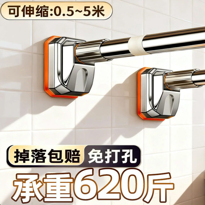 天猫伸缩杆晾衣杆免打孔强力承重晾衣架不锈钢窗帘杆浴帘杆衣柜挂衣杆