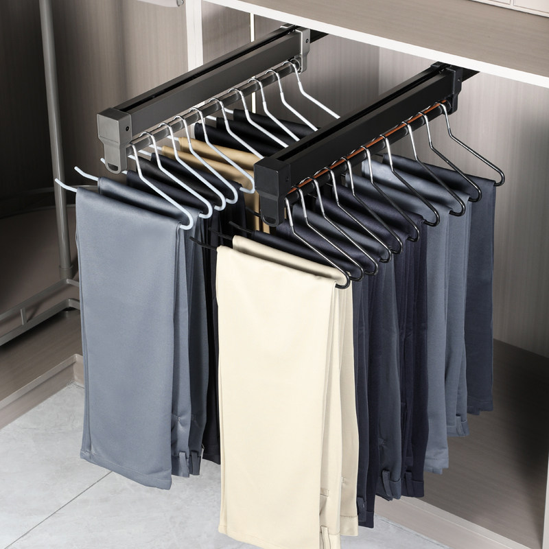天抽拉裤架伸缩滑轨裤抽拉式衣架挂衣杆衣柜内置挂裤子轨道收纳神器